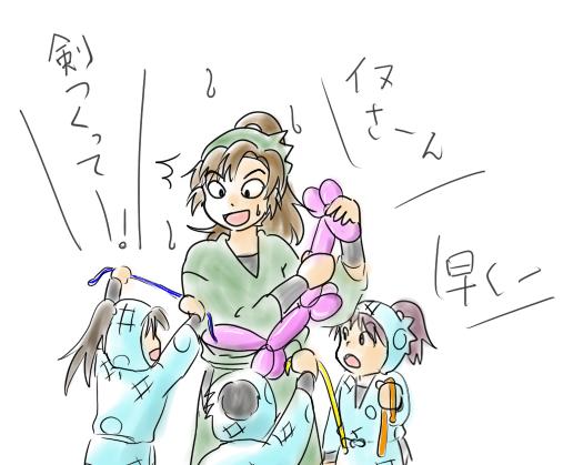と、ふと思いましたが そうでもないかー な? 今日は電話が鳴りっぱなしでですねー。私以外の実習生はみんな先生の患者さんについっちゃってたんで私一人で受付していたんですよ。ていってもほとんど電話対応と予約の確認ぐらいなんですけど。 あまりに電話が多すぎて焦ってたんでしょうか、「少々お待ちください」ってのを「ちょうちょうお待ちください」って言ってしまって、周りにいたDrと親と、あまつさえ子供にまで笑われてしまった。これは恥を捨てるとは言わない。恥ずかしいっ! 話しかけてみると、食いついてくる話題ってのは 女の子はプリキュアかポケモン。男の子はたいていポケモンですね。特にプラチナが大人気。私もほしいっ!って言ったらこと細かく説明してくれます。 プラチナになったからあそこのジムリーダーのポケモンの数が増えたとか なんとかをしたらギラティナのフォルムがチェンジするとか バトル施設が増えて、ポイントを溜めるとスクラッチがもらえるとか ポケモンの話題は私しかわからないので、一緒に聞いてた子がしきりに「プラチナって何?」と聞いてきます。 簡単にいえば、レッドグリーンブルーバージョンに加えて新要素が増えたピカチューバージョンみたいなもんです。 ダイヤモンド・パールバージョンに加えてちょっとした新要素が入ったのがプラチナバージョン。確か二週間ぐらい前に発売されたんですけど、買わなくていいやーと思って買ってないのです。 って説明してあげても誰も理解してくれません。その前にダイヤモンドパールって何?っていうね。もうどう説明すりゃいいんだ。 実習してるより子供と喋ってるほうがはるかに楽しいです。 小児が終わったら恐怖の外科だというのに・・・・。はぁ・・・。 2008.09.23 Tue 20:46:40 雨が降ると~どんなに爆睡していても、夜中に雨が降り出すと自然に目が覚めます。なぜなら窓があけっぱなしだからです。 これ去年もビックリしたんですよ。目が自然とさめて、窓を閉めてからまた寝るんです。 私すごい!と思ったけど、もしかしたらみんなそうかもしれない。 今日は休日だったのにほとんど更新できなかったです。パソコンさわれなかったです; 5年生全員。何も考えず、とりあえず久々知先輩だけは下書きから書き始めたんですが、せっかくだから全員描こうと、残りの三人は一発描きです。 一発描きのほうがおかしくないというミラクル・・・っっ なぜっ!ホワーイ! 前二人はまじめで、後ろ二人はふざけてる。 ところで今ピッタンコカンカンって番組で私の地元が特集されてるんですけど。驚きの事実が。 「長崎のゴマドーフは甘い!」 ・・・・・え・・・・? ごま豆腐って、甘くないの? 世間知らずの私、また一つ大人になりました。そっか甘くないのか。ショック。 2008.09.23 Tue 19:24:56 八方斎の作戦の段わーいわーいもういっかーい再び(笑
