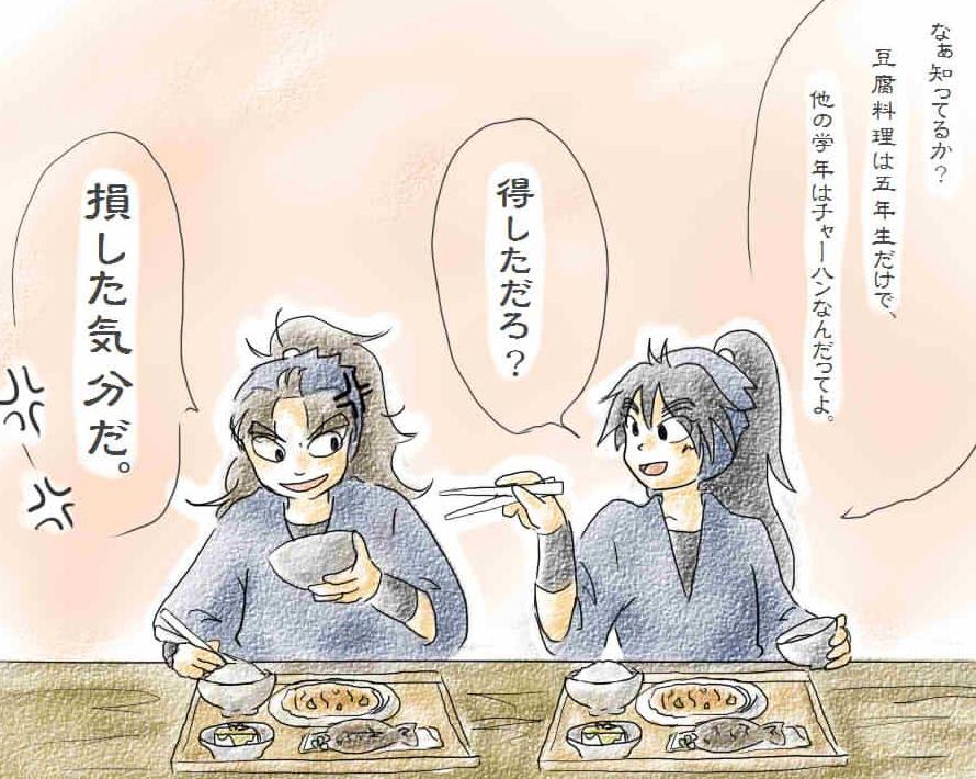 あとですね、腫れるぐらい痛みが強いようであれば 神経取る必要性が高くなりますよ、えらいこっちゃ。 犬の歯内治療ってできるんだろうか。 ていうか学園長先生、そのお年で歯が奥歯まで残っているなんてすごい。 さて感想行きます!小松田くん頭大丈夫か。 てっきり小松田くんが犯人かと思いきや、やっぱり学園長でしたかー。 へむへむも乱太郎たちも もう慣れっこですね(そうでもない 夜にヨウカンなどの甘いものを食べるのは非常によくないですよー!! 2008.06.23 Mon 20:19:50 戦い好きの委員長の段2008.06.21 Sat 22:15:16 兵太夫のカラクリの段もしかしてアニメで兵ちゃんがカラクリ好きだっていう設定が出た初めての回なんですか? これ私見たことありましたよ!!!うっすらと記憶が・・・っっ!見ながらどこか懐かしさがありました。 やっぱり兵ちゃんかわいいですねー、あのいたずらっぽい声もかわいいっ この話に三ちゃんも出たらもっとかわいいことになりそうですねっ! ところで来週の放送のサムネに釘付けです。銀メダルでシュンとしてる三ちゃんかわいいいー!!!! すっごい楽しみです。伊助ちゃんもかわいいです。サムネにはなかったけど金吾もメインで出てきそうですね! 来週から保存科だけど、この1年生たちに支えられて乗り越えていけそうです。 ホントに平日は感想だけで、休日にしかイラスト更新してないこのブログ。来るなら週末ですよ!(笑 でもふと思った、「描き溜めしとけばいいんじゃねーの。」 なるほどなぁ!でも私にはムリです。 小説はともかく、絵は描いたらすぐアップします。なのでやっぱり週末の休日のみイラスト更新が続きそうです。 早く背景が書けるようになりたいけど、実は描こうとも思ってない時点でかなわない夢です、ホント。 ちなみに私は医療系といっても歯科関係です。先週は矯正にいました。道具が多くて面白かった! でも医者じゃないのでいじれません。治療風景みてると医者ってホント度胸のいる仕事だと思います。 2008.06.21 Sat 17:18:38 そうなるだろう2008.06.21 Sat 14:52:48 2年生2008.06.20 Fri 22:16:50 1~3位