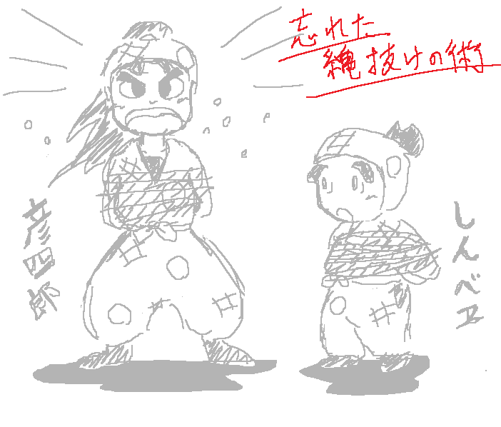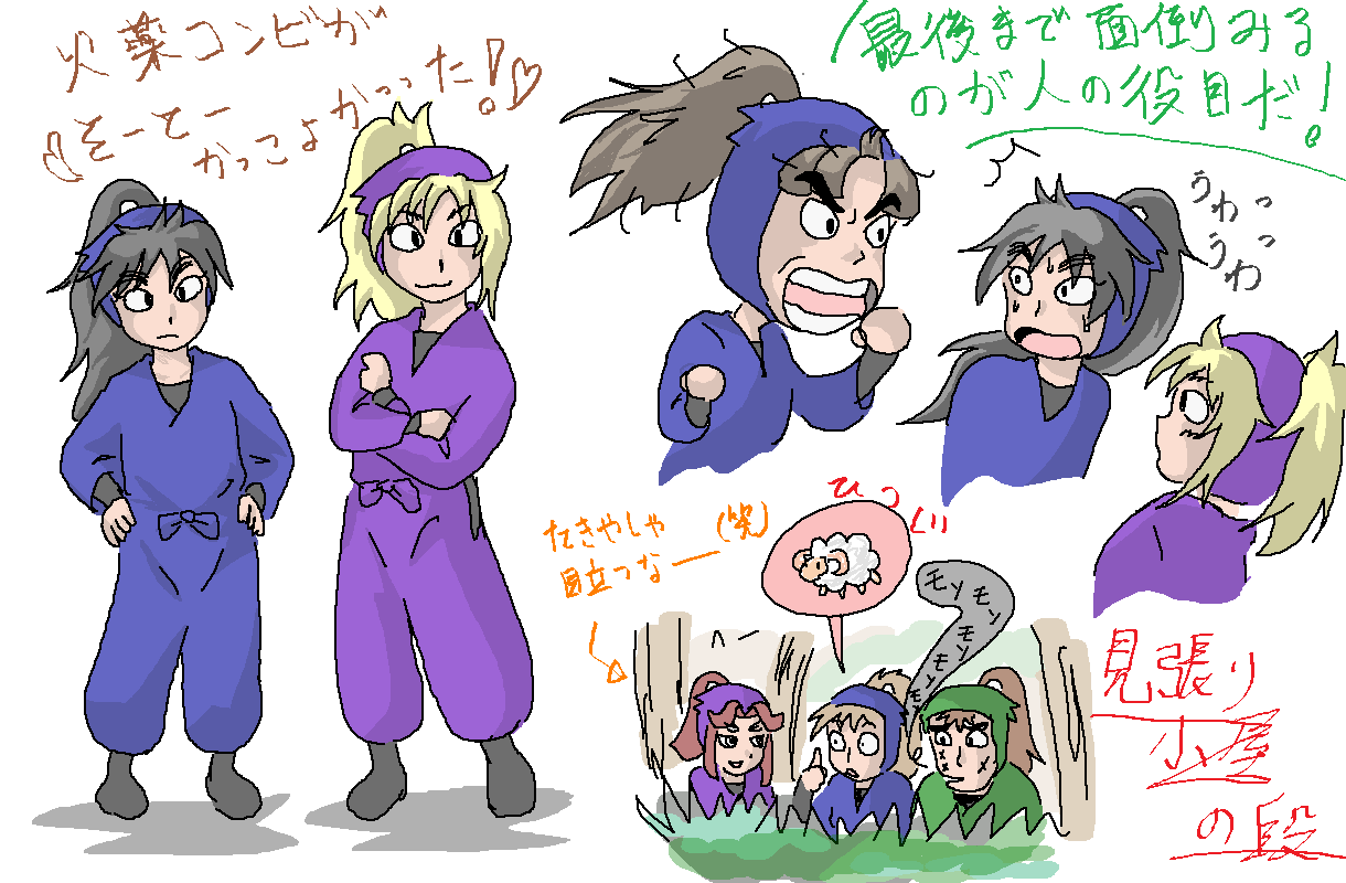今週本当おもしろかったですね!一昨日と昨日の感想はまた後ほど。 っていうか昨日の放送でやっとドクタマ忍者の名前を覚えました。あれはあれだ、忍法記憶術だ。 風、雨、雲が覚えにくかったというのに、まんまと学園長の言葉で覚えてしまった。 そうかー、あの顔長いの風鬼っていうのかー。 すごい今更(笑 2008.05.07 Wed 21:11:22 見張り小屋の段